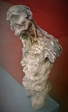 En 1912, elle détruit ses œuvres. Camille Claudel écrit « avoir brisé tous ses modèles en plâtre, et brûlé tout ce qu’elle pouvait pour se venger de ses “ennemis” »[73] dans son atelier. Les voisins se plaignent auprès de son frère et de sa famille : « Qu’est-ce que c’était ce personnage hagard et prudent, que l’on voyait sortir le matin pour recueillir les éléments de sa misérable nourriture[74] ? »[75]