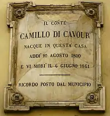 Camillo Cavour naît le à Turin, ville alors rattachée à la France du Premier Empire.