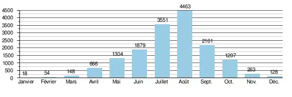 - De 3500 à 4500 pèlerins (par mois) en juillet et aout. Les marcheurs, durant l'été, sont majoritairement de nationalité espagnole. Le reste de l'année, les pèlerins étrangers dominent.
