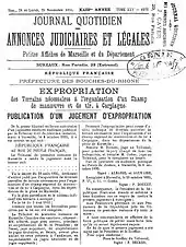 - Journal quotidien des annonces judiciaires et légales de Marseille du 16 novembre 1895.