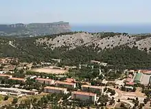 Le camp s'étend sur 1 500 hectares, principalement sur le 9e arrondissement de Marseille, ainsi que partiellement sur les communes d'Aubagne, Carnoux et Cassis (Bouches-du-Rhône).