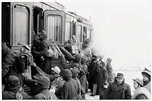 L'article 75 de la Convention de Genève de 1929[32] stipule : "Lorsque les belligérants concluront une convention d'armistice, ils devront, en principe, y faire figurer des stipulations concernant le rapatriement des prisonniers de guerre. Si des stipulations à cet égard n'ont pas pu être insérées dans cette convention, les belligérants se mettront néanmoins, le plus tôt possible, en rapport à cet effet. Dans tous les cas, le rapatriement des prisonniers s'effectuera dans le plus bref délai après la conclusion de la paix."