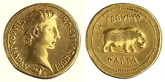 - La province romaine d'Égypte (officiellement en latin : Alexandreae et Aegyptus), est créée par Auguste à la suite de la conquête du pays à la mort de Cléopâtre et de Césarion. L'Égypte devient partie de l'Empire romain en qualité de province impériale (c'est ainsi la première province impériale proprement dite) gouvernée par un préfet choisi par l'Empereur parmi l'ordre équestre : le praefectus Alexandreae et Aegypti. L'attrait romain pour l'Égypte est principalement lié à son intérêt pour l'approvisionnement en blé de la ville de Rome.