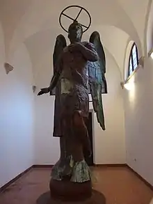 Le 5 septembre 1993, alors qu'une cérémonie de mariage était en cours, la foudre a frappé la flèche du clocher de la basilique, brûlant l'ange en bois qui était placé dessus. Le corps en bois a été complètement carbonisé, tandis que les tôles de revêtement en cuivre ont subi une déformation importante et le détachement de plusieurs portions, à l'exception des ailes qui ont été épargnées. Après la restauration de l'ange et avant son placement définitif à l'intérieur de l'église, la statue restaurée a servi de modèle pour réaliser la copie en bronze qui domine désormais Venise du haut du clocher.