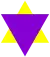 Un triangle jaune inversé sous le triangle d'une autre couleur pour les Juifs entrant dans une autre catégorie. Ces deux triangles forment l'étoile de David. Les déportations de Juifs débutèrent en 1941 et faisaient suite aux persécutions dans les ghettos et à des exécutions par fusillades.