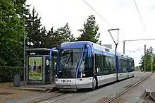 Une rame de l'ancien tramway sur pneus à la station Campus 2.