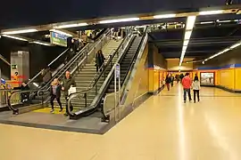 La station possède deux accès équipés d'escaliers et d'escaliers mécaniques, ainsi qu'un troisième direct depuis l'extérieur par ascenseur. C'est une station accessible aux personnes à la mobilité réduite. Elle est située en zone tarifaire A[6],[5].