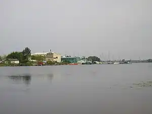La direction du flux va généralement de la Buļļupe vers le Daugava, l'île Milestības saliņa sur la rive nord, le quartier de Bolderāja sur la rive sud, la rive n'est pas accessible à certains endroits en raison des maisons. Il existe un projet pour aménager le rivage en promenade[2]. A l'entrée du Daugava se trouvent les quais du club "yachts Latvijas", de l'autre côté desquels le fossé Hapaka se jette dans le Daugava.