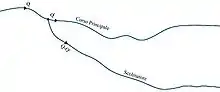 En théorie, le mouvement est variable mais il est généralement schématisé comme un mouvement continu ; il est donc possible de retracer une hauteur de mouvement uniforme et une hauteur critique dans un lit à faible pente () et dont le courant est vraisemblablement lent. On trace le profil d'aval en amont en considérant une section de vallée et, de là, en regardant la vallée, s'il ne se produit pas de perturbation, on considère que le mouvement est uniforme après la section A, on aura donc un profil D2 avant la section A. La présence du canal de dérivation génère le profil présenté sur le schéma.