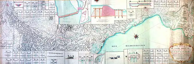 Ouvrage d'art exceptionnel, considéré par ses contemporains comme le plus grand chantier du XVIIe siècle[note 2], le canal du Midi révolutionne le transport fluvial et la circulation dans le Midi de la France de l'Ancien Régime. Le défi, relevé par Pierre-Paul Riquet, son concepteur, est d'acheminer l'eau de la montagne Noire jusqu'au seuil de Naurouze, le point le plus élevé du canal. Louis XIV autorise le début des travaux par un édit royal d'octobre 1666. Supervisé par Pierre-Paul Riquet, le chantier dure de 1666 à 1681, sous le contrôle de Jean-Baptiste Colbert.