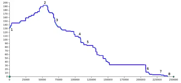 | Altitudes | Début : 132 m Fin : 0 m Maximale : 189 m Minimale : 0 m |