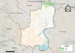 Les communes limitrophes sont Aspiran, Brignac, Clermont-l'Hérault, Nébian, Le Pouget, Pouzols, Saint-André-de-Sangonis et Tressan.