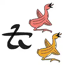 | C'est un idéogramme dans le terme ṯȝ | « oisillon, poussin »[1], |