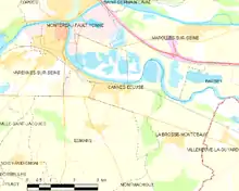 - l’Yonne, longue de 292,34 km[5], principal affluent gauche de la Seine, traverse la commune d'est en ouest. Mais elle n'a pas toujours été canalisée comme elle l'est actuellement. En effet, dans les temps anciens, elle se jetait dans la Seine par plusieurs bras. Un de ces bras, au nord du cours actuel, transparaît dans le découpage cadastral[6] et sa trace est visible sur le plan d'intendance de 1783[7].