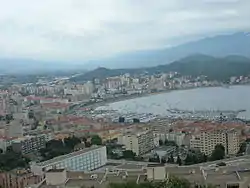 La cité des Cannes (au fond à gauche) et la cité des Salines (au fond à droite), vues des hauteurs d'Ajaccio