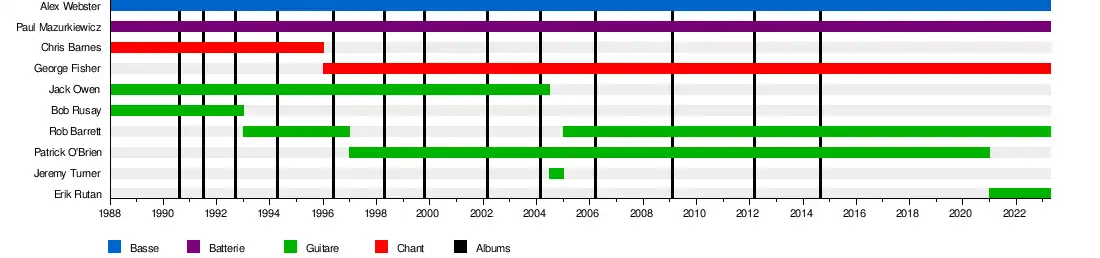 - George « Corpsegrinder » Fisher – chant lead (depuis 1995)
