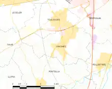 Les communes les plus proches[Note 1] sont[2] : Toulouges (2,1 km), Pollestres (3,1 km), Ponteilla (3,3 km), Le Soler (4,7 km), Trouillas (5,0 km), Villeneuve-la-Rivière (5,3 km), Baho (5,5 km), Llupia (6,3 km).