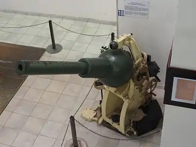 Ce canon va devenir l'arme standard de la ligne Maginot où il sera utilisé en de nombreuses versions sous tourelle et en casemate.