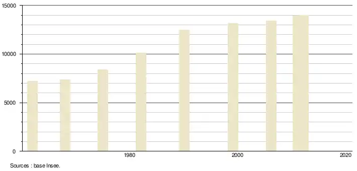 (Sources : Base Insee, population sans doubles comptes à partir de 1962[10] puis population municipale à partir de 2006[11])