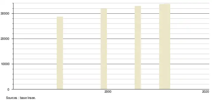 - Le tableau et le graphique présentent les populations légales publiées par l'Insee et issues des recensements de population. Les enquêtes de recensement étant, depuis la réforme de 2004, réparties sur cinq années, il est recommandé de calculer des évolutions sur des périodes d'au moins 5 ans. Ainsi la population de 2009, ne peut être comparée qu'avec une population antérieure de plus de 5 ans, à savoir, celle de 1999.