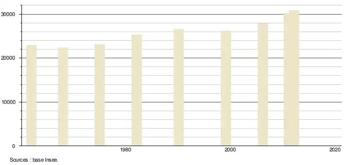 - Population municipale légale en vigueur au 1er janvier 2024, millésimée 2021, définie dans les limites territoriales en vigueur au 1er janvier 2023, date de référence statistique : 1er janvier 2021.