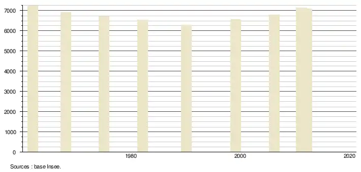 (Sources : Base Insee, population sans doubles comptes à partir de 1962[15] puis population municipale à partir de 2006[16])