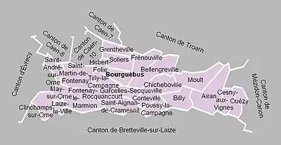 Les anciennes communes suivantes était incluses dans le territoire du canton de Bourguébus[23] :