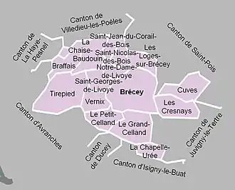 Les anciennes communes suivantes étaient incluses dans le canton de Brécey[8] :