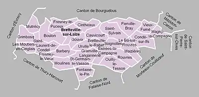 Les anciennes communes suivantes étaient incluses dans le canton de Bretteville-sur-Laize[4] :