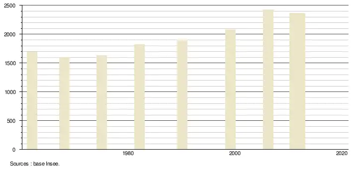 - Population municipale légale en vigueur au 1er janvier 2024, millésimée 2021, définie dans les limites territoriales en vigueur au 1er janvier 2023, date de référence statistique : 1er janvier 2021.