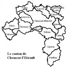 Situation du canton de Clermont-l'Hérault dans le département de l'Hérault. | |