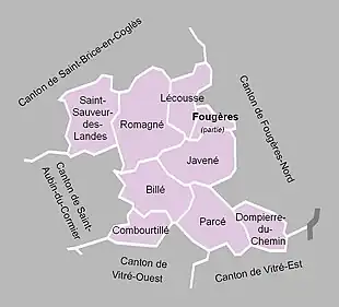 À la suite du redécoupage des cantons pour 2015, Fougères est à nouveau réparti entre deux cantons (Fougères-1 et Fougères-2). Les autres communes sont toutes rattachées au canton de Fougères-2.