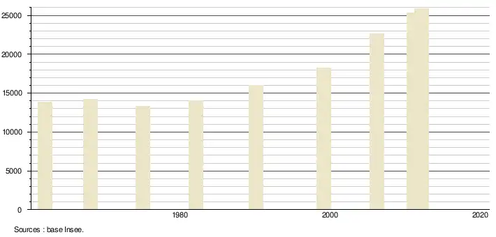 - Population municipale légale en vigueur au 1er janvier 2024, millésimée 2021, définie dans les limites territoriales en vigueur au 1er janvier 2023, date de référence statistique : 1er janvier 2021.