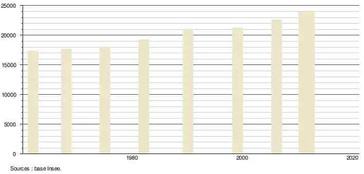 - Population municipale légale en vigueur au 1er janvier 2024, millésimée 2021, définie dans les limites territoriales en vigueur au 1er janvier 2023, date de référence statistique : 1er janvier 2021.