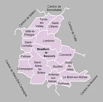Les anciennes communes suivantes étaient incluses dans le canton de Montfort-le-Gesnois[8] :