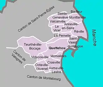 Les anciennes communes suivantes étaient incluses dans le canton de Quettehou[3] :
