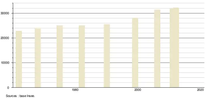 - Population municipale légale en vigueur au 1er janvier 2024, millésimée 2021, définie dans les limites territoriales en vigueur au 1er janvier 2023, date de référence statistique : 1er janvier 2021.