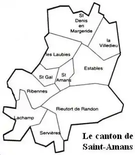 | Saint-Amans (chef-lieu) | 48133 | CC Randon - Margeride | 9,98 | 155 (2014) | 16