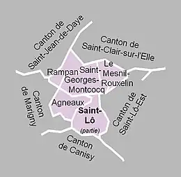 À la suite du redécoupage des cantons pour 2015, les communes du Mesnil-Rouxelin, Rampan et Saint-Georges-Montcocq sont rattachées au canton de Pont-Hébert et la commune d'Agneaux ainsi que la quasi-totalité de la partie saint-loise de ce canton à celui de Saint-Lô-1. Seul l'îlot de la rue de Cotbois est intégrée au canton de Saint-Lô-2.