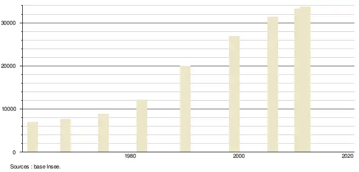 - Population municipale légale en vigueur au 1er janvier 2024, millésimée 2021, définie dans les limites territoriales en vigueur au 1er janvier 2023, date de référence statistique : 1er janvier 2021.