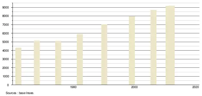 (Sources : Base Insee, population sans doubles comptes à partir de 1962[14] puis population municipale à partir de 2006[15])