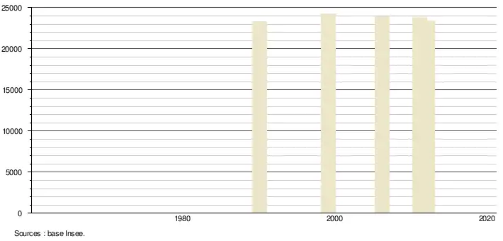 - Population municipale légale en vigueur au 1er janvier 2024, millésimée 2021, définie dans les limites territoriales en vigueur au 1er janvier 2023, date de référence statistique : 1er janvier 2021.