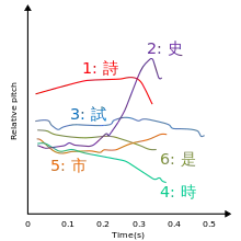 | Contour | ˥ / ˥˧ | ˧˥ | ˧ | ˨˩ / ˩ | ˩˧ | ˨ |