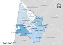 - le canton du Sud-Médoc (21 communes dans l'arrondissement de Lesparre-Médoc et 1 commune dans l'arrondissement de Bordeaux)