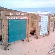 - Plage du Truc Vert (grande plage surveillée, naturiste sur le côté droit, par la côte sauvage en prenant l'avenue du Truc Vert à la sortie du village des Jacquets, avant l'entrée de celui du Petit Piquey et menant à la sortie de la route forestière forestière du Truc Vert, à l'ouest des villages du Canon et de l'Herbe),