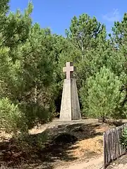 - Monument « Guyot de Salins ». À proximité de « La Forestière » se trouve sur un petit tertre, en mémoire du jeune Ferdinand Guyot de Salins[32] inspecteur-adjoint des forêts à Arès[33], et du brigadier des Eaux et Forêts Popis, morts noyés le 16 octobre 1883, leur baleinière à voile de l'administration ayant chavirée, un petit monument en forme de pyramide de pierres avec une plaque de marbre gravée relatant l’héroïsme de Salins périssant en sauvant son subordonné. La version de ce drame relatée par la presse de l'époque est sensiblement différente : l'inspecteur provoqua le chavirage de l'embarcation en grimpant au mat pour remettre la drisse défaite par le souffle d'une tempête ; sur les quatre personnes agrippées au bateau, Salins puis Popis finirent par lâcher prise et coulèrent, tandis que les deux rescapés, les gardes des Eaux et Forêts Ducamin et Bousquet, furent sauvés par des employés de la Villa algérienne[1],[34].