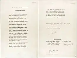 Les deux pages de l’acte de capitulation allemand, signé à Reims le par le Generaloberst Jodl et visé par les représentants alliés sur place.