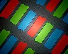 Du fait de la précision requise, les pastilles colorées du filtre sont déposées directement sur le capteur avec une technologie proche de la photolithographie des circuits intégrés, de même que le réseau de microlentilles.