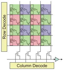Un capteur CMOS (« complementary metal-oxide-semiconductor ») est composé de photodiodes, à l'instar d'un CCD, où chaque photosite possède son propre convertisseur charge/tension et amplificateur (dans le cas d'un Capteur à pixels actifs (APS)).