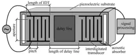 Depuis plusieurs années, les capteurs à ondes acoustiques de surface connaissent un intérêt croissant en raison de la miniaturisation toujours plus poussée des dispositifs électroniques, notamment via les microsystèmes électromécaniques. Un des avantages de cette technologie est la possibilité de créer des capteurs passifs et sans fil[7].